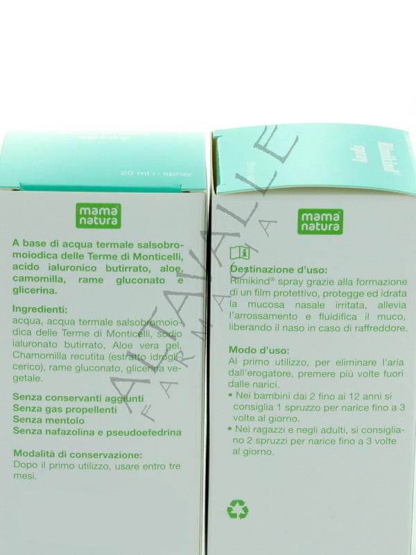 Mama Natura Rimikind Spray è un decongestionante nasale che, grazie ai suoi estratti vegetali e all'acqua termale, è utile in caso di raffreddore e irritazione della mucosa nasale liberando il naso, agisce delicatamente, rispetta l’equilibrio naturale del naso del tuo bambino;