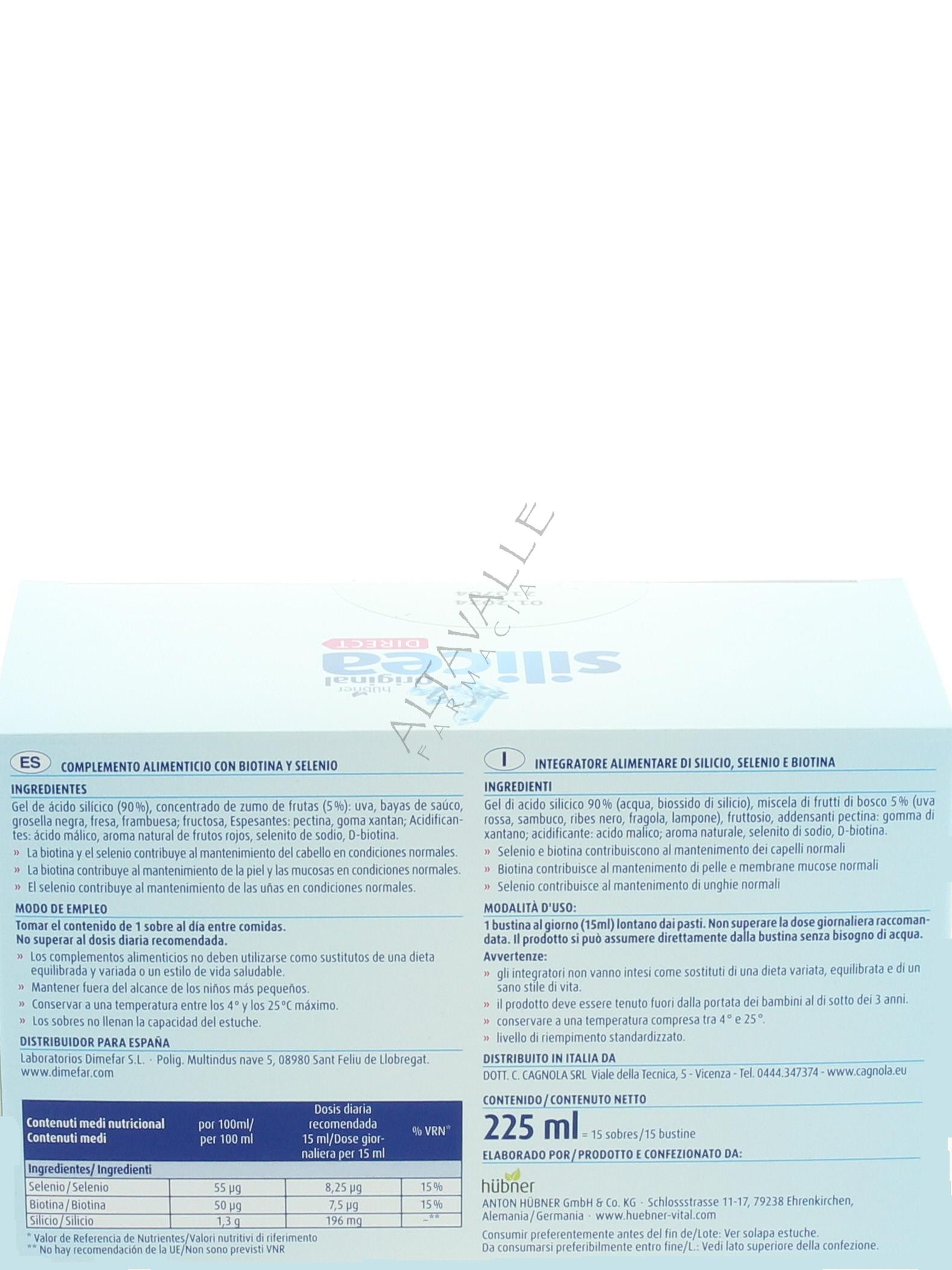 Hubner Original Silicea Direct è un integratore alimentare a base di Acido silicico Selenio e Biotina;