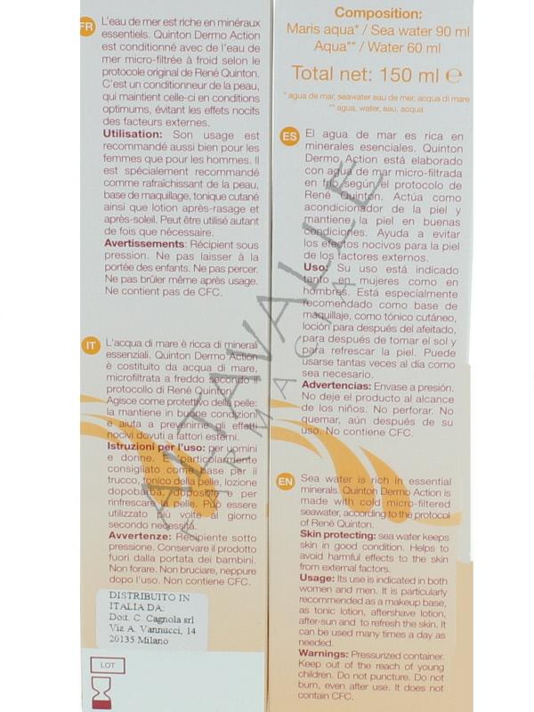 Quinton Dermo Action Spray, acqua di mare oceanica, acqua di mare ipertonica, microfiltrata;