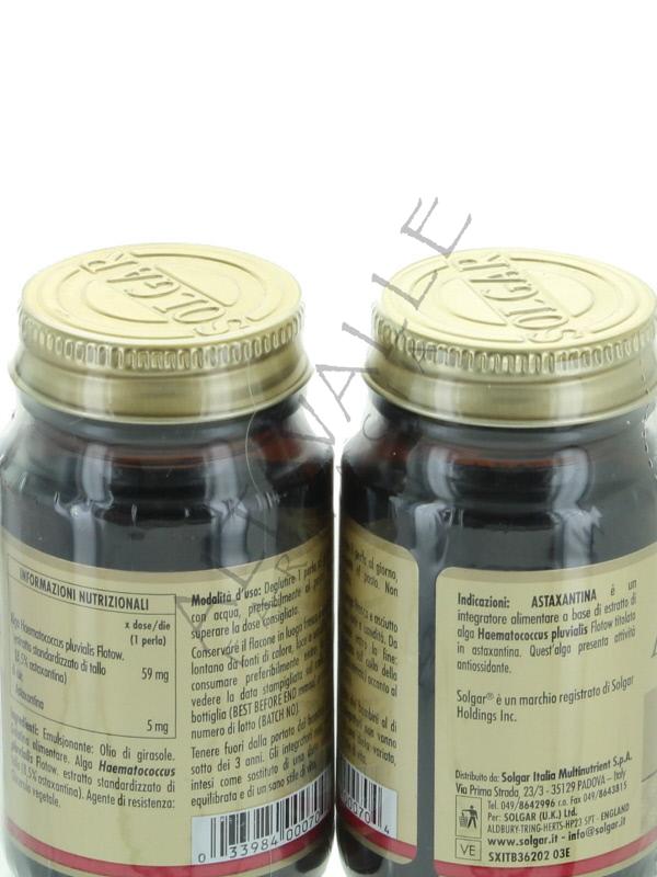Solgar Astaxantina è un integratore alimentare a base di Alga Haematococcus pluvialis estratto standardizzato in astaxantina;