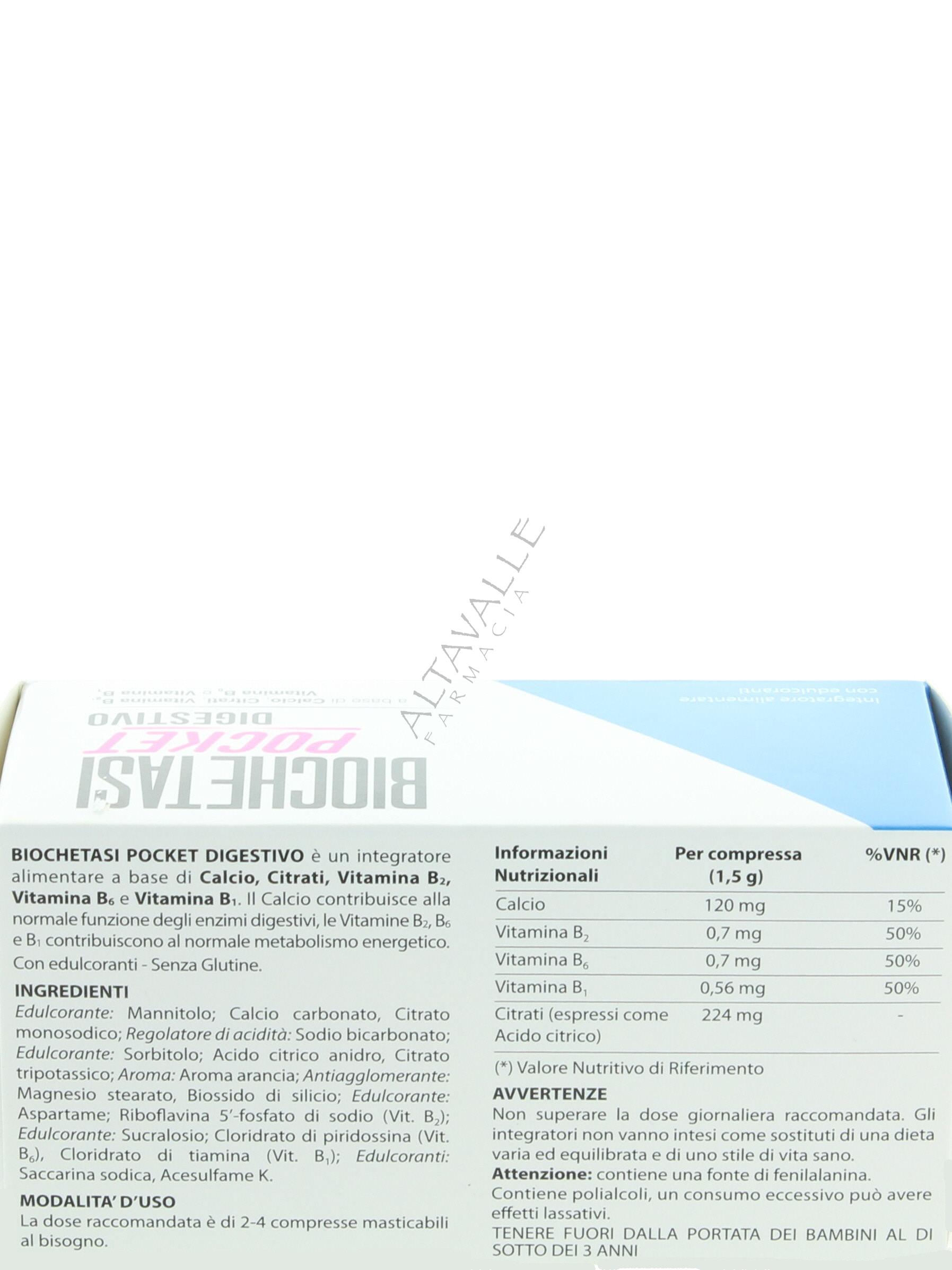 Biochetasi pocket è un integratore alimentare a base di Citrati e Vitamina del gruppo B: le Vitamine B2, B6 e B1 contribuiscono al normale metabolismo energetico, i citrati ed il sodio bicarbonato agiscono come antiacidi,