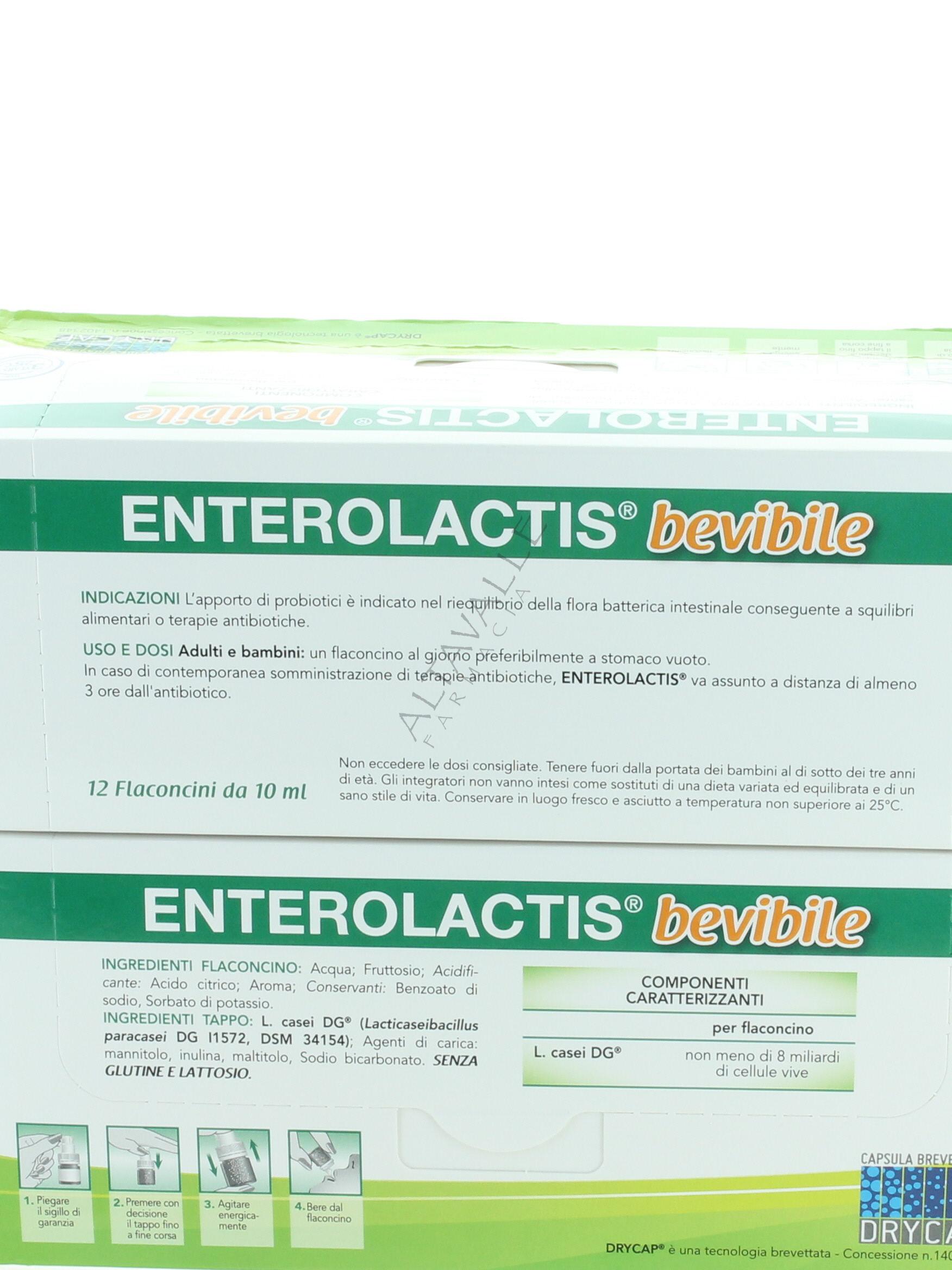 Enterolactis bevibile è a base di Lactobacillus paracasei utile per riequilibrare la flora batterica intestinale dopo squilibri alimentari o terapie antibiotiche;
