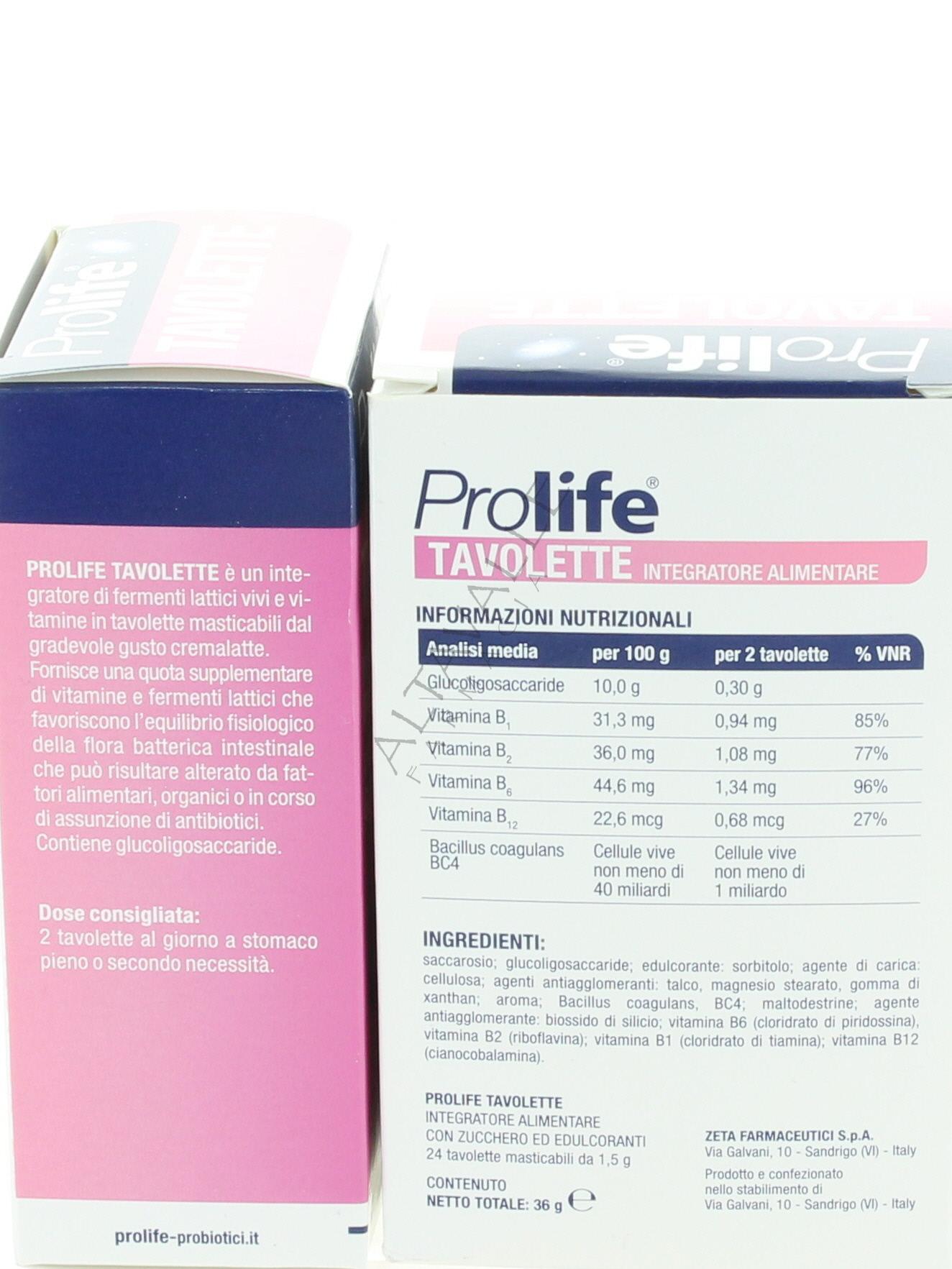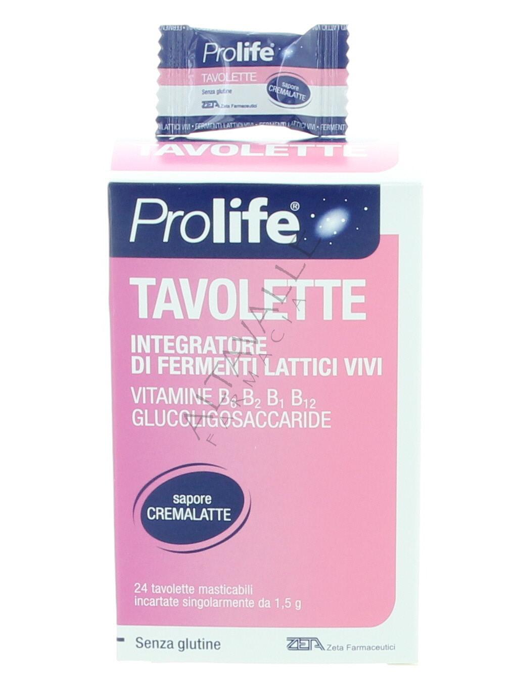 Prolife Tavolette è un integratore di fermenti lattici vivi e Vitamine del gruppo B, Glucoligosaccaride;