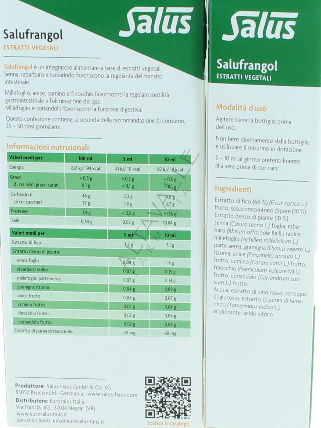Salus Salufrangol Sciroppo a base di estratto di fichi e vegetali, favorisce la funzione intestinale, aiutando a mantenerne la regolarità, agisce velocemente e in modo efficace in caso di intestino pigro, grazie all’azione equilibrata delle sue erbe, è ideale per aiutarvi a liberare e regolare l’intestino; utile nella stitichezza;