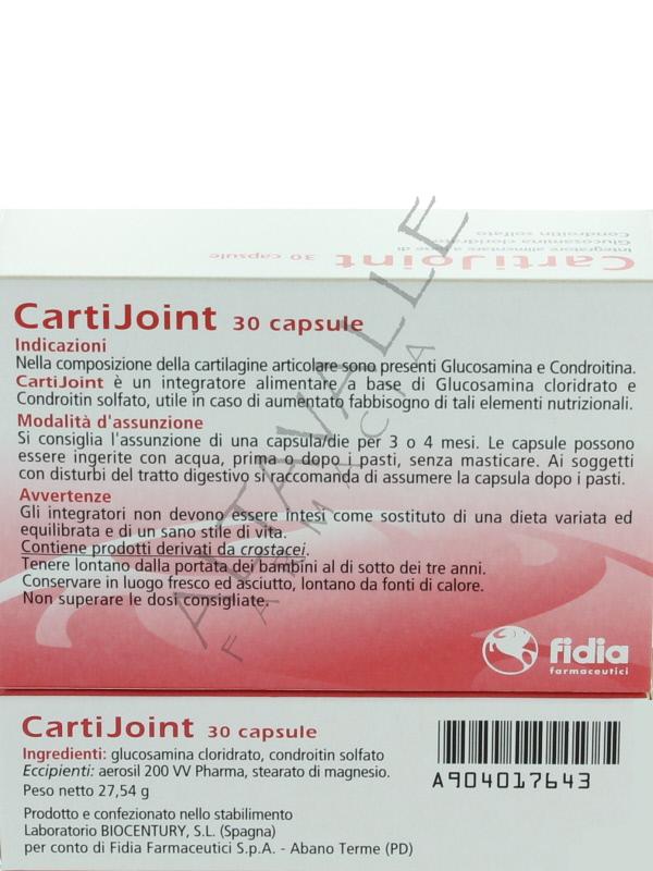 Carti Joint è un integratore alimentare a base di glucosamina e condroitin solfato, componenti naturali necessari alla biosintesi dei proteoglicani, sostanze fondamentali per il trofismo della cartilagine delle articolazioni;