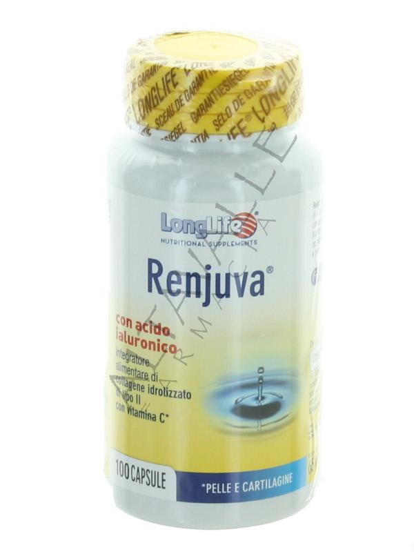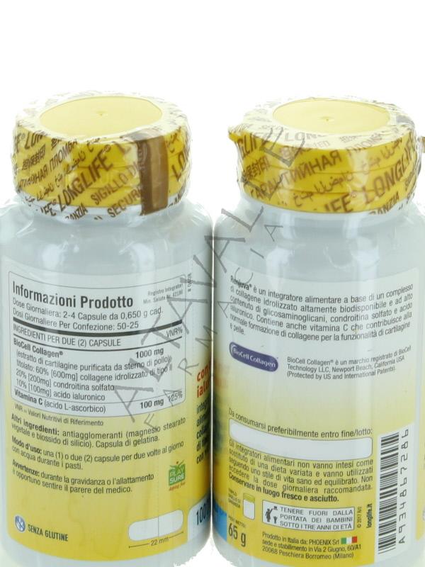 Longlife Renjuva è a base di estratto di Cartilagine Titolato al 10% in Acidi Ialuronico, al 60% in Collagene Idrolizzato di Tipo II, al 20% di condroitina Solfato e di Vitamina C, utile per la pelle e le cartilagini;