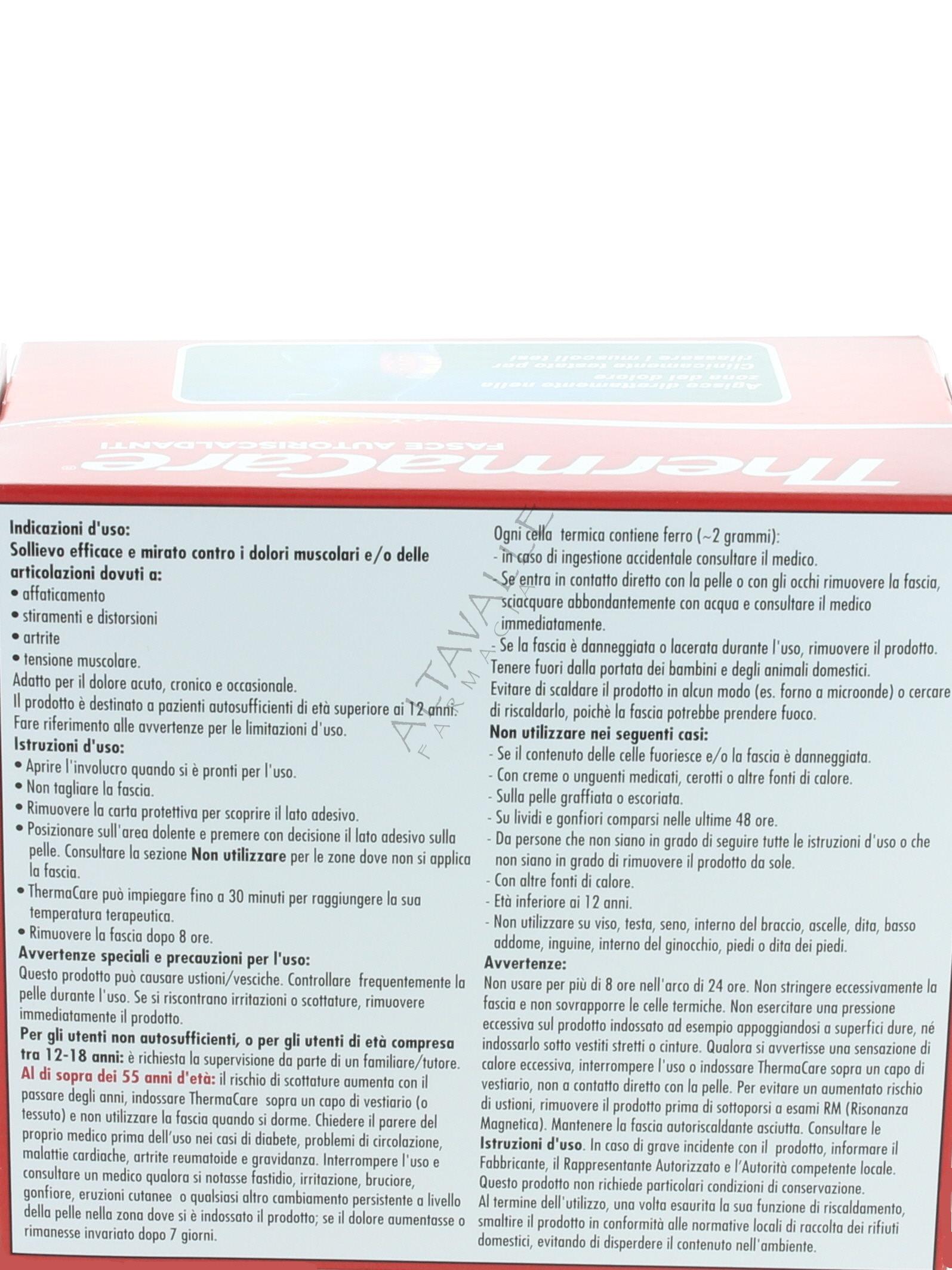 Thermacare Fasce Autoriscaldanti multiuso offrono i benefici della terapia del calore (termoterapia): la temperatura costante e moderata per 8 ore, rilassa le tensioni muscolari e contribuisce così ad alleviare i dolori muscolari e articolari;