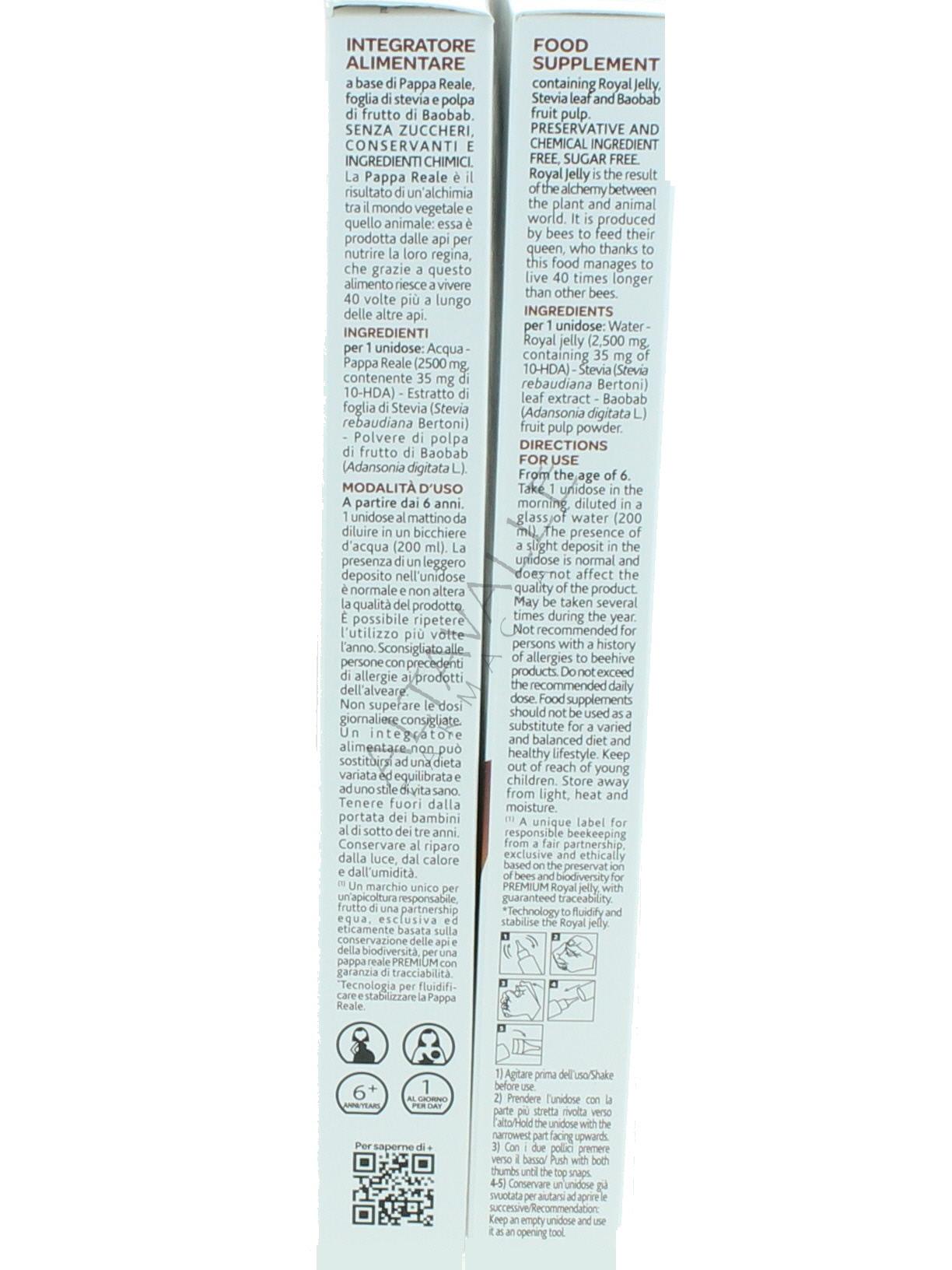 destinate agli adulti un unicadose apporta 2500 mg di pappa reale bio al giorno;