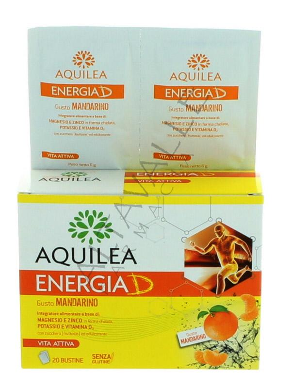 Aquilea Energia D integratore di Magnesio e Zinco in forma chelata, Potassio e Vitamina D3; utile per apportare una quota supplementare di nutrienti alla dieta giornaliera, in presenza di carenze alimentari o di aumentati fabbisogni;