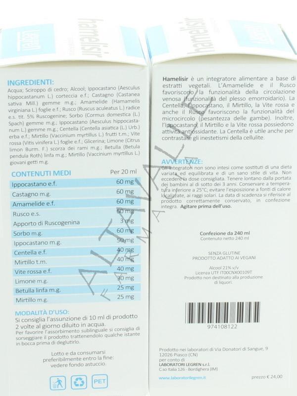 Hamelisir di Legren è un integratore a base di estratti vegetali che agiscono migliorando la circolazione;