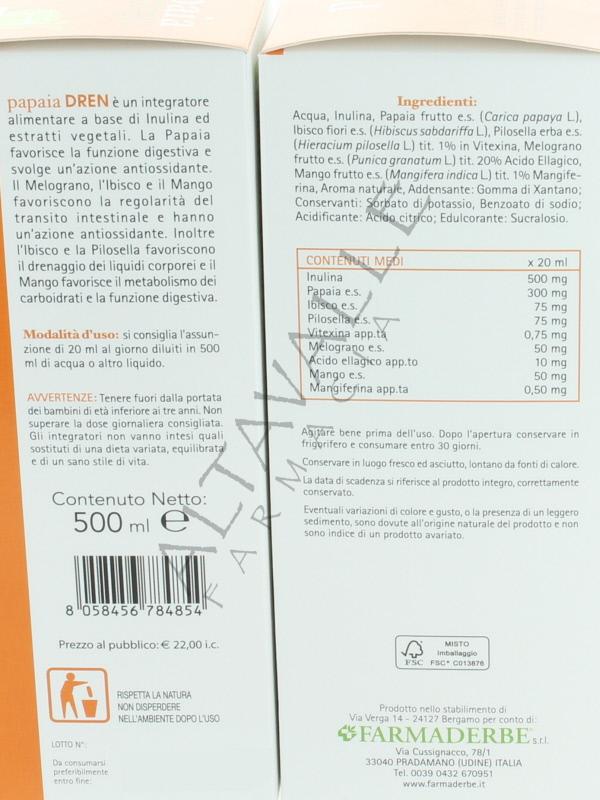 Papaia Dren di Farmaderbe è una soluzione concentrata ad azione sgonfiante mirata, aiuta a sostenere attivamente il processo digestivo ed il drenaggio dei liquidi corporei;