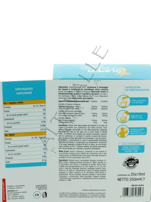 Super Ananas Slim è nato per il controllo del peso corporeo con edulcorante (sucralosio),