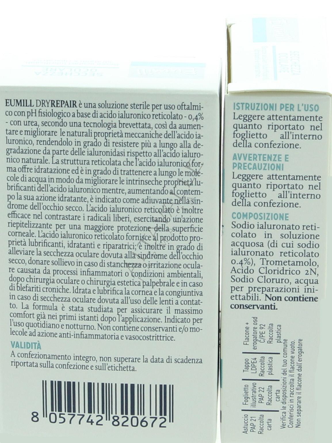 Eumill Dryrepair Collirio ad azione lubrificante, idratante e riparatrice;