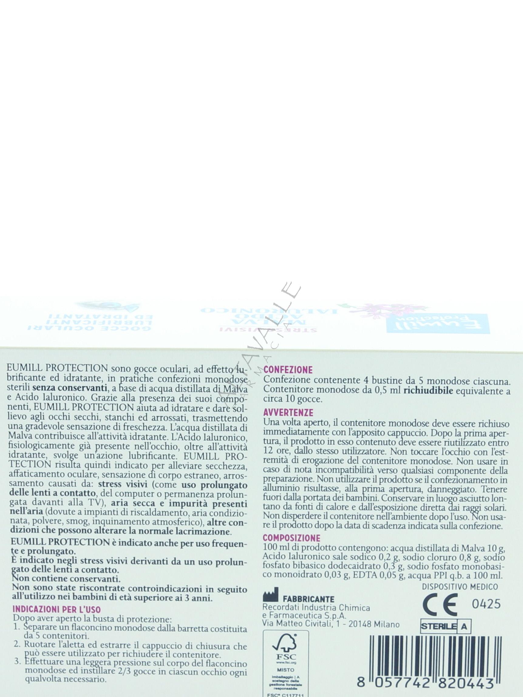 Eumill Protection Collirio Monodose ad azione lubrificante ed idratante,