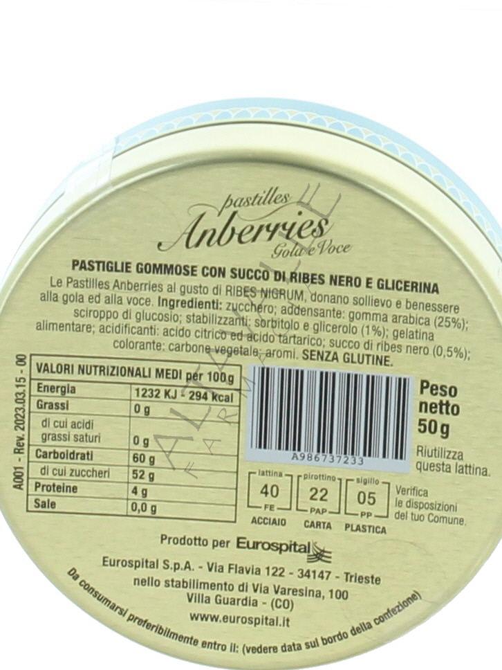 Pastiglie Gommose Anberries con glicerina e gomma arabica sono a base di Ribes nero noto antinfiammatorio attivo sulle mucose con cui viene a contatto