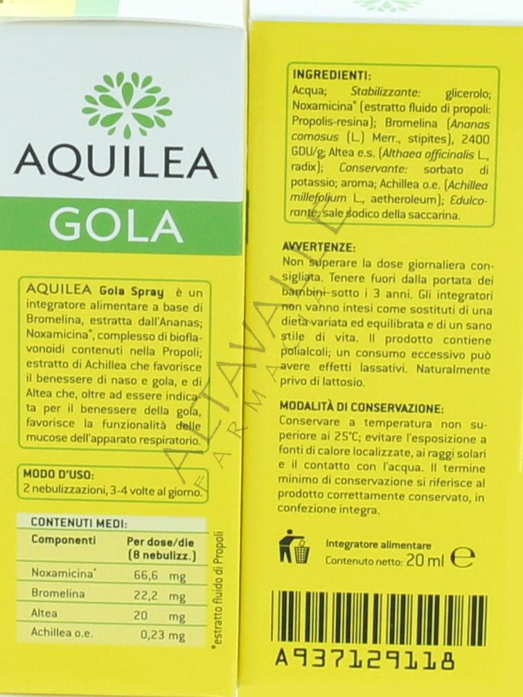 Aquilea Gola Spray è un integratore alimentare a base di Noxamicina, Bromelina Altea e Achillea;
