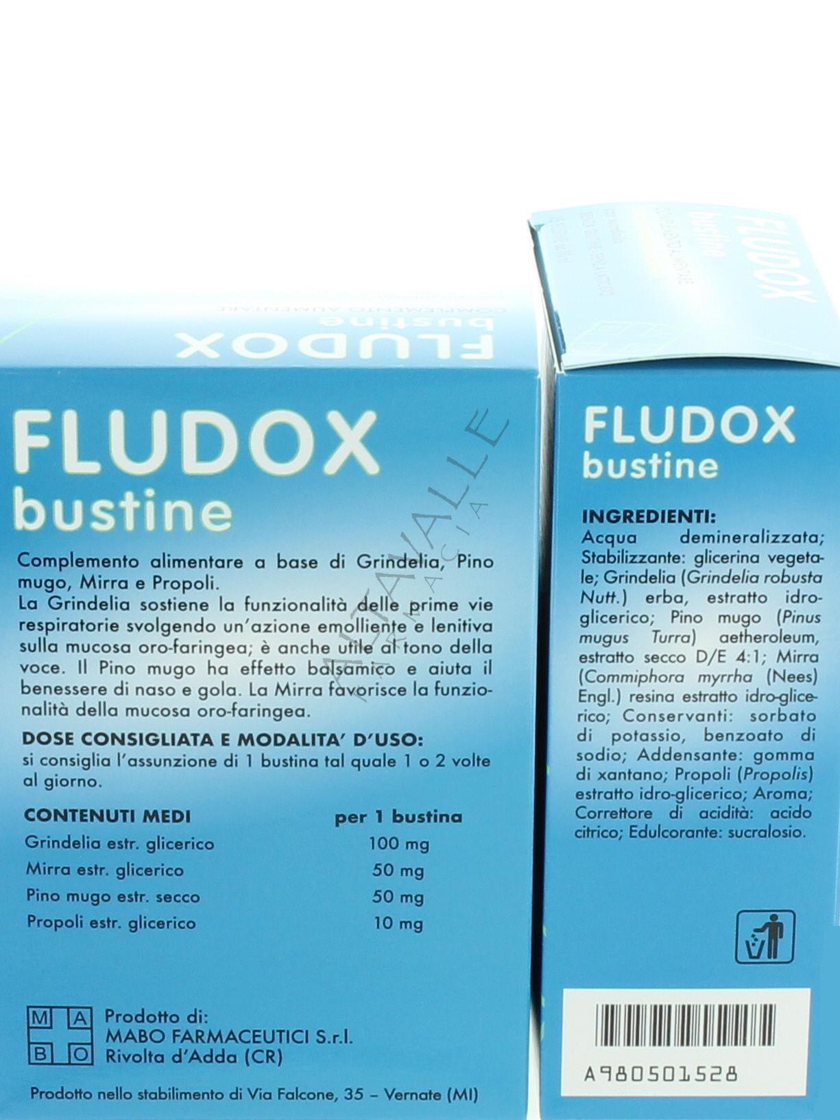 Mabo Fludox bustine è un complemento alimentare a base di estratti vegetali di Grindelia, Mirra, Pino Mugo e Propoli;