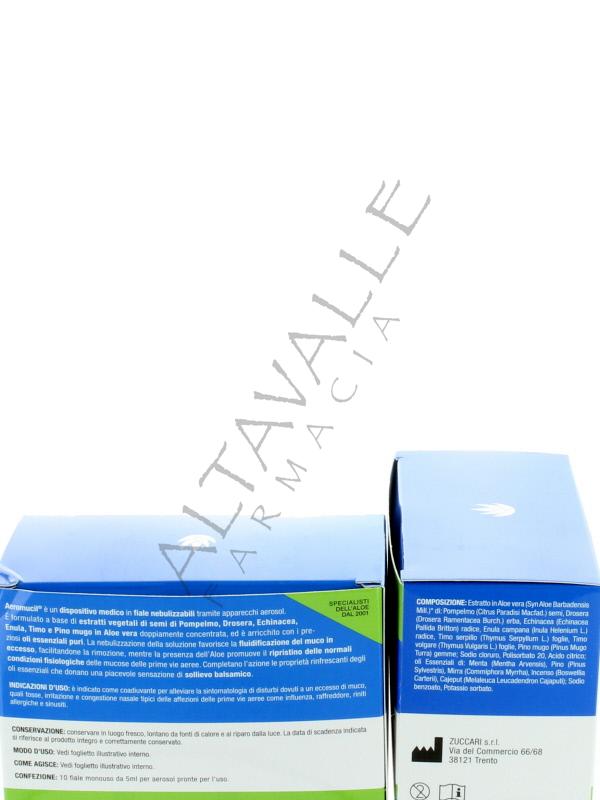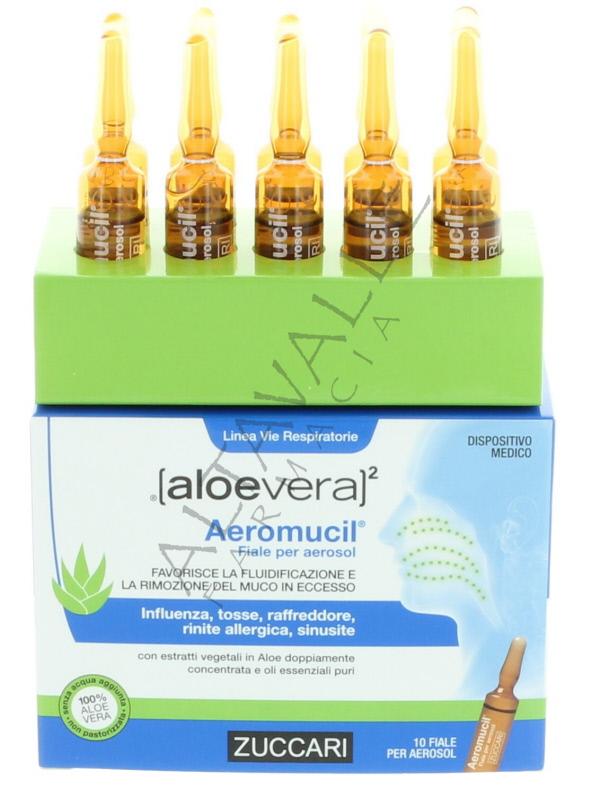 Aloevera2 Aeromucil di Zuccari sono delle fiale per aerosol a base di aloe vera che favoriscono l'idratazione e fluidificano il muco in eccesso facilitandone la rimozione,
