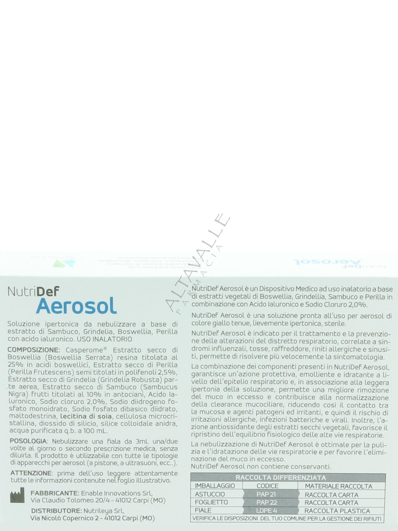 Nutridef Aerosol è una soluzione ipertonica per trattamento dei sintomi da raffreddamento e dei sintomi allergici, ideale per espettorare il muco, ideale per bambini e adulti;