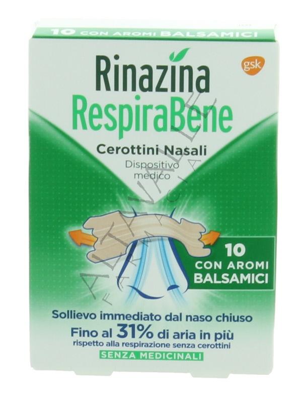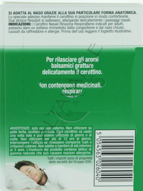 Rinazina Respirabene cerottini balsamici allargano i passaggi nasali e migliorano il flusso d’aria attraverso il naso;