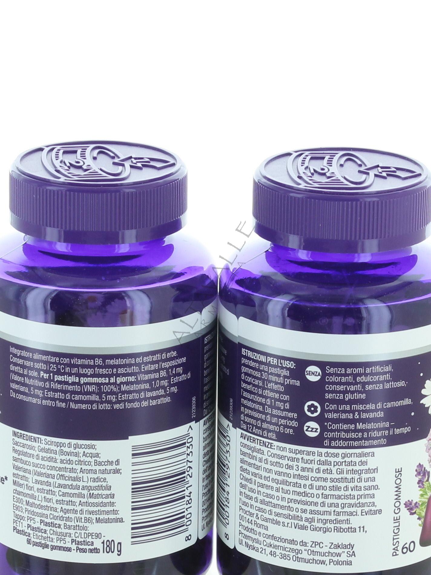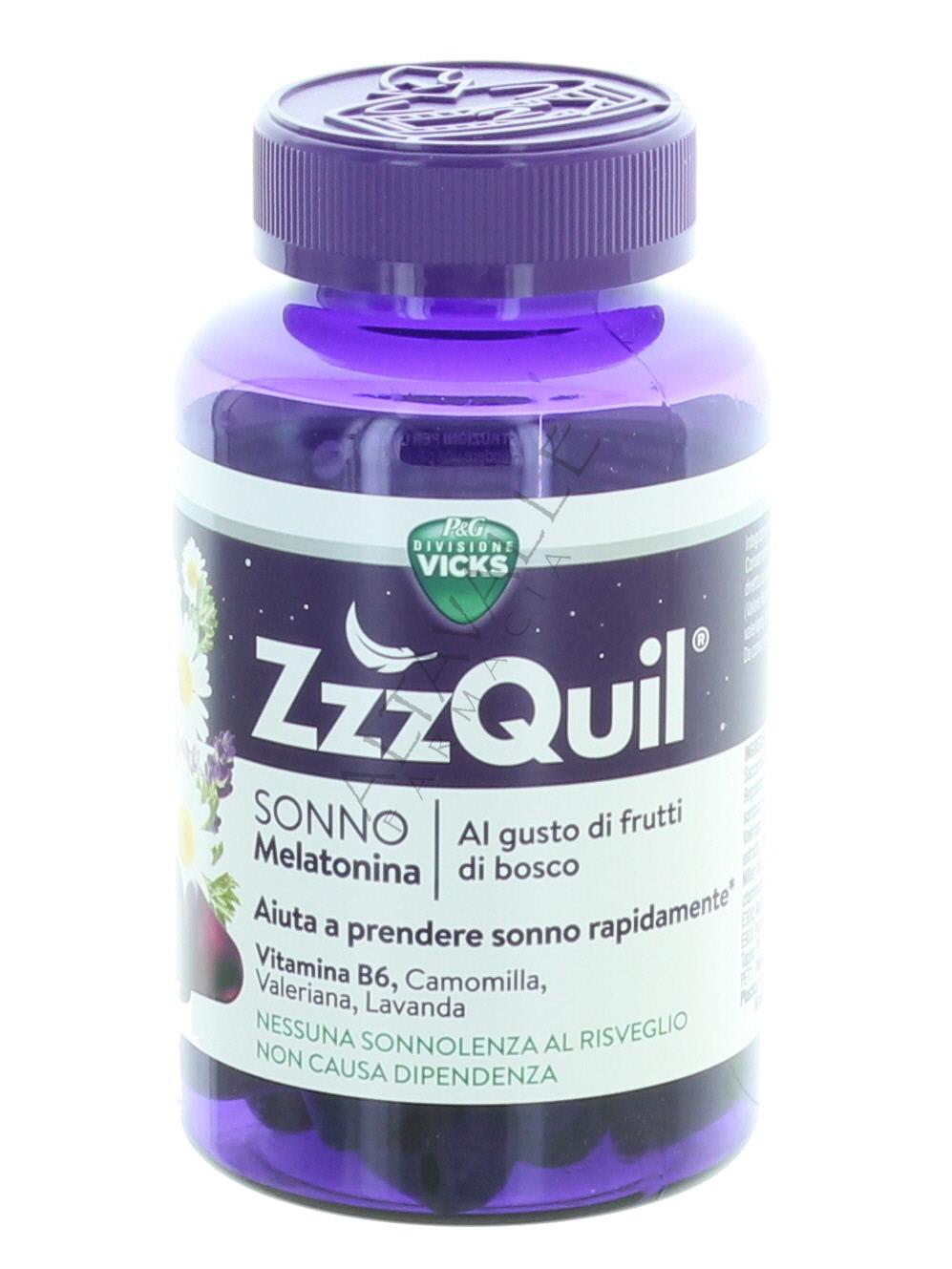 Zzzquil Natura Capsule Gommose è un integratore alimentare a base di melatonina, sambuco, camomilla, valeriana e lavanda;