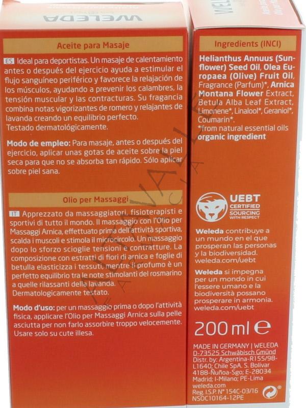 Weleda Arnica Olio per il corpo stimola e favorisce le funzioni fisiologiche della pelle grazie agli estratti di arnica montana e di foglie di betulla; possiede una spiccata azione tonificante sui tessuti;