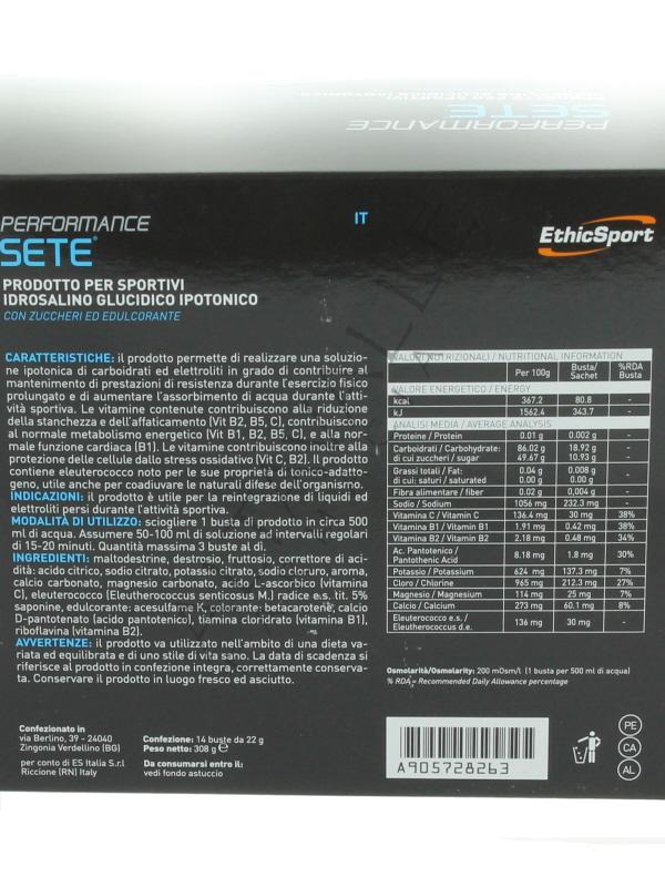Ethicsport Performance Sete gusto Limone permette di mantenere le riserve elettrolitiche, glucidiche e idriche a livelli ottimali, contribuisce al mantenimento di prestazioni di resistenza durante l’esercizio fisico prolungato;