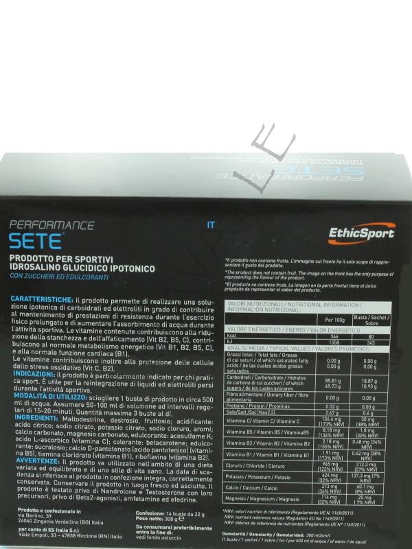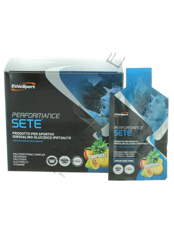 Ethicsport Performance Sete gusto Tropic permette di mantenere le riserve elettrolitiche, glucidiche e idriche a livelli ottimali, contribuisce al mantenimento di prestazioni di resistenza durante l’esercizio fisico prolungato;