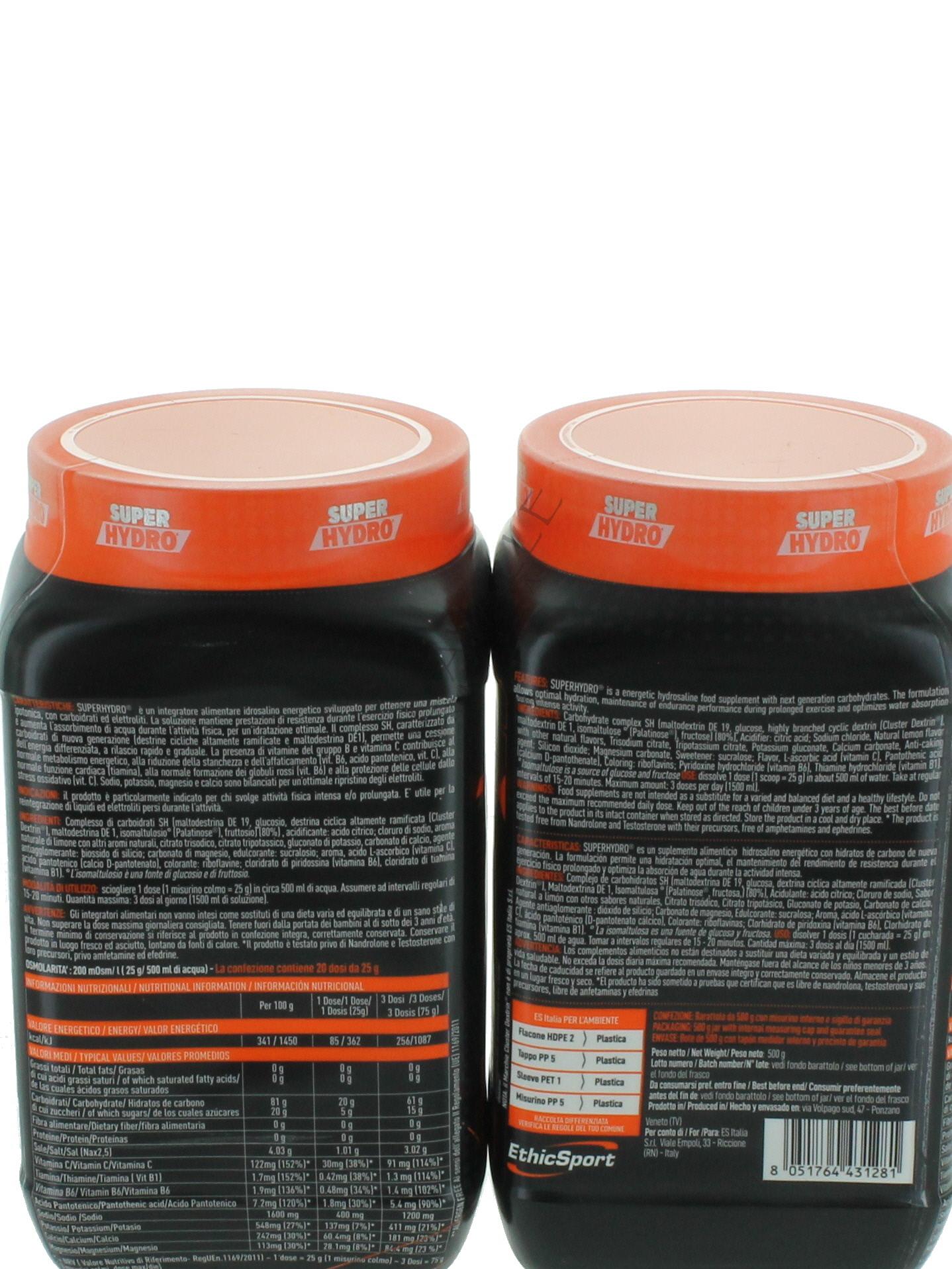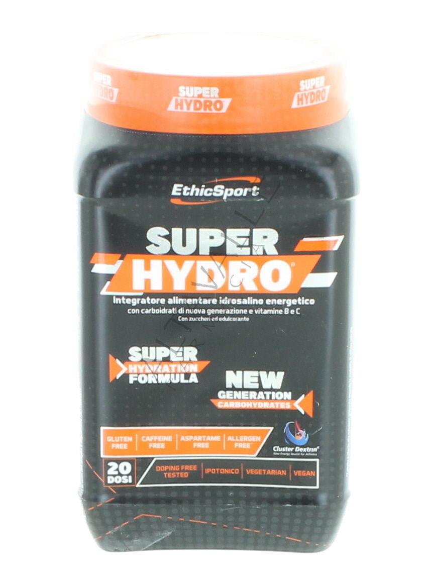 Ethicsport Super Hydro è un integratore alimentare idrosalino energetico con carboidrati di nuova generazione e vitamine B e C per ottenere una miscela ipotonica con carboidrati ed elettroliti;