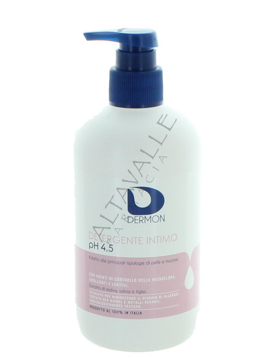 Dermon Intimo pH4,5 è un detergente delicato ad azione antisettica, adatto all’igiene intima quotidiana, deterge efficacemente assicurando massima igiene, svolge un’elevata azione antibatterica ed antimicotica;