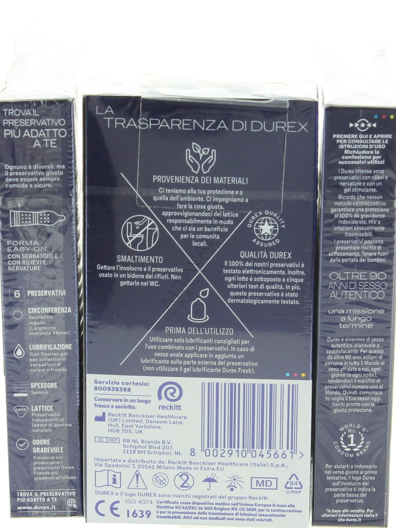 Durex Intense profilattici stimolanti con rilievi e nervature stimolanti, con vestibilità regular, in lattice di gomma naturale,