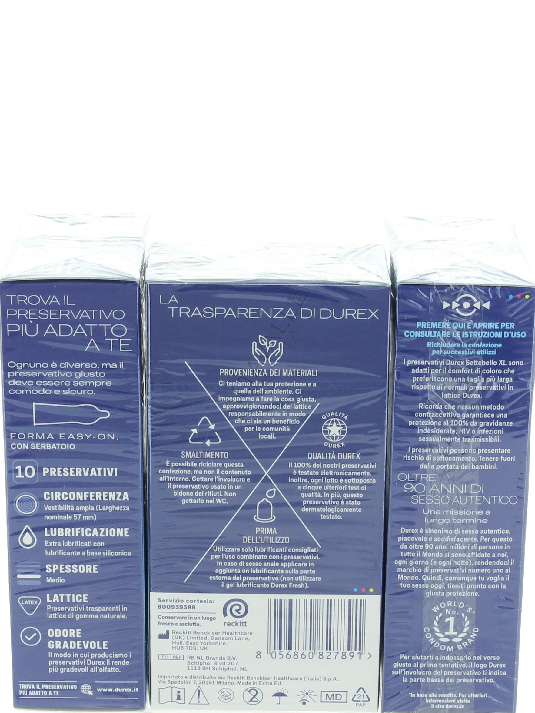 Durex Settebello XL profilattici extra large in lattice di gomma naturale,