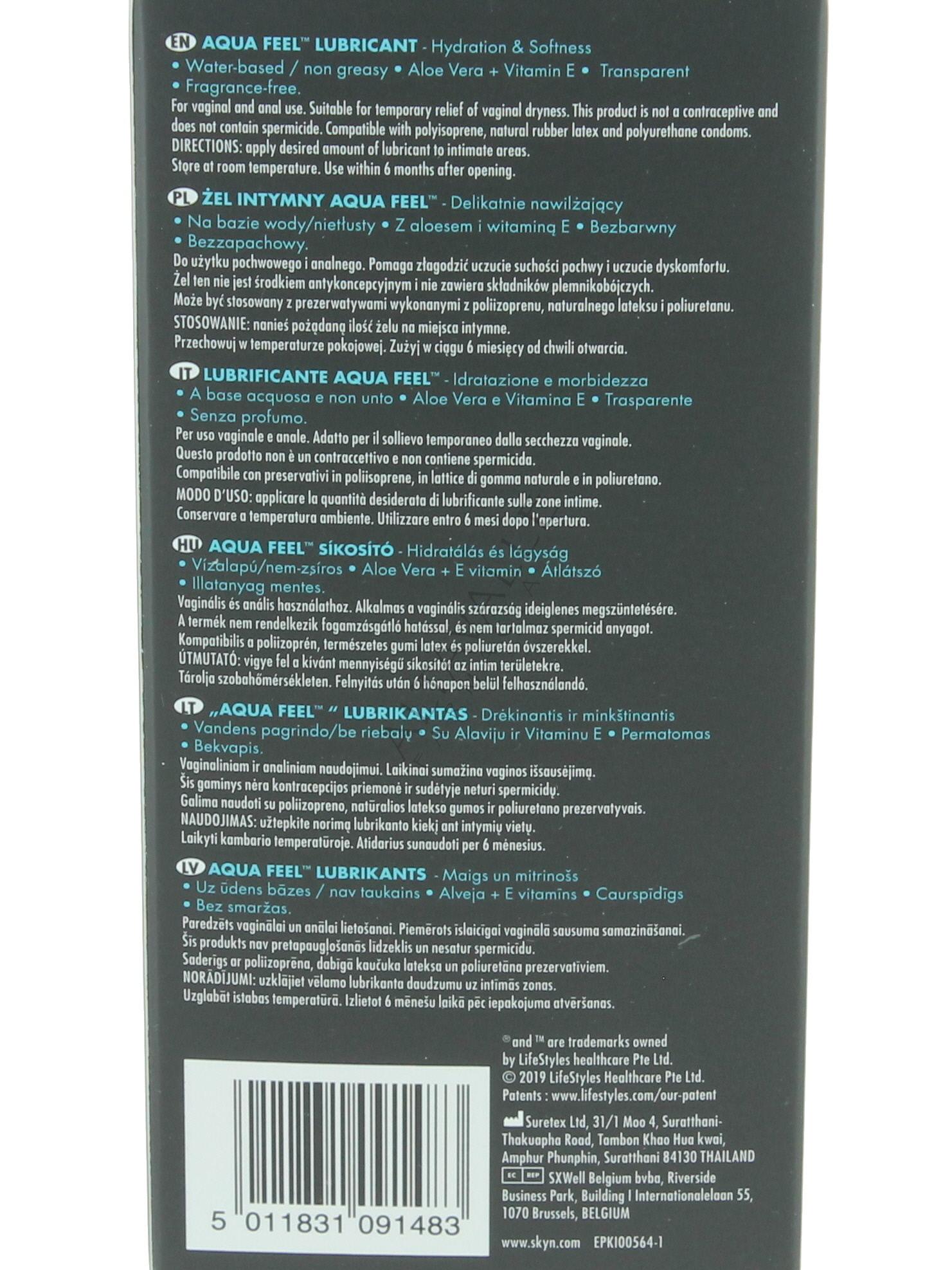 Akuel Skin Aquafell gel lubrificante a base d'acqua per una sensazione delicata e naturale;