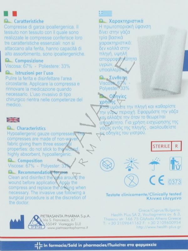 MasterAid Dermatess Plus Garza 5x9cm compressa morbida di garza idrofila sterile tessuto non tessuto è una medicazione ad elevato potere di assorbimento;