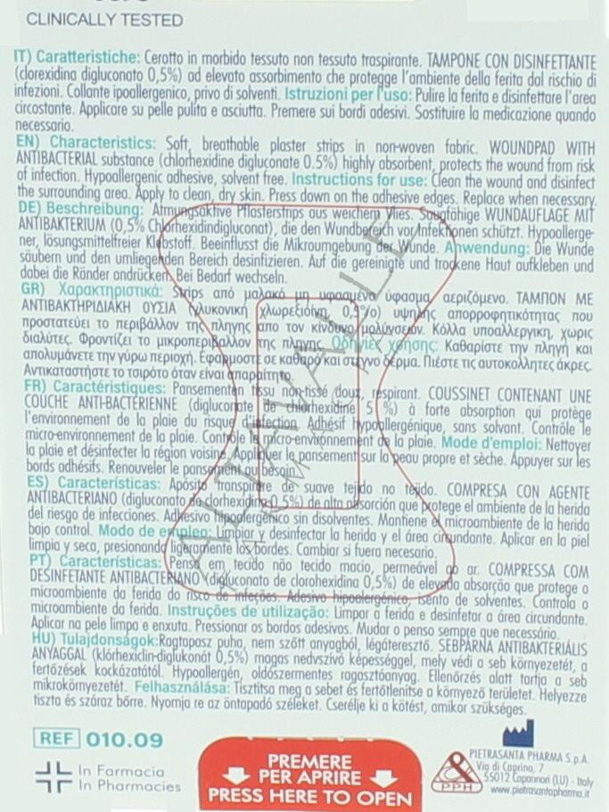 la garza contiene clorexidina digluconato 0,5% ad attività antibatterica.