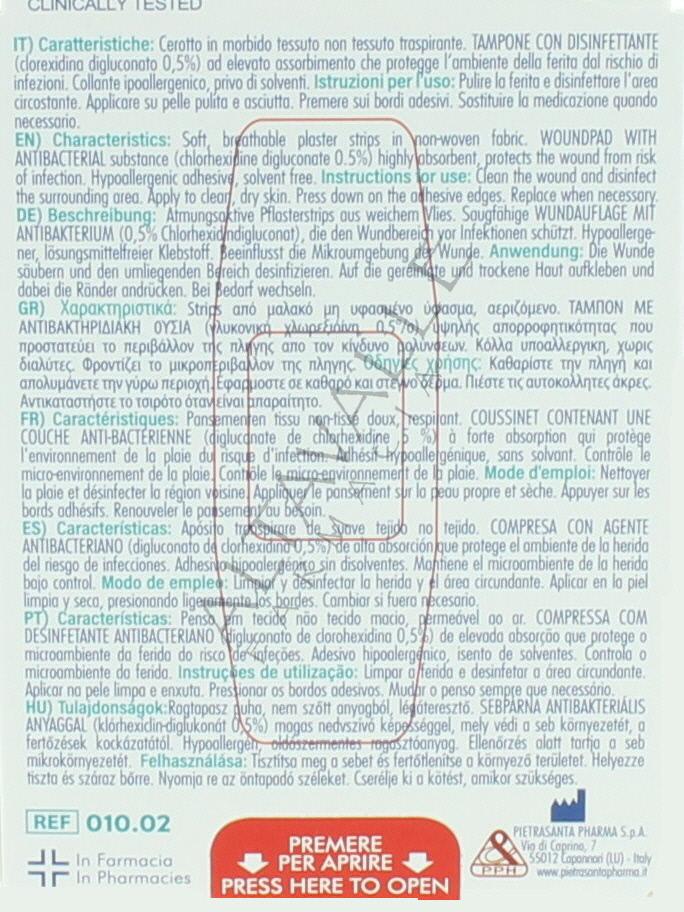 la garza contiene clorexidina digluconato 0,5% ad attività antibatterica.