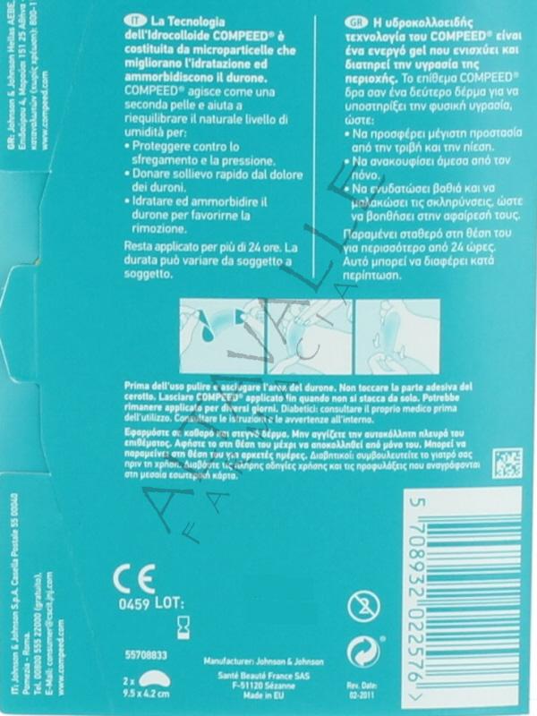 - è sufficiente effettuare un pediluvio e strofinare delicatamente la zona interessata con un asciugamano - dopodiché, dovrà essere applicato un nuovo compeed