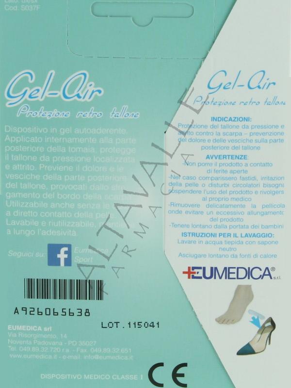 Eumedica Gel Air Protezione Tallone dispositivo in gel autoaderente, va applicato internamente alla parte posteriore della scarpa;