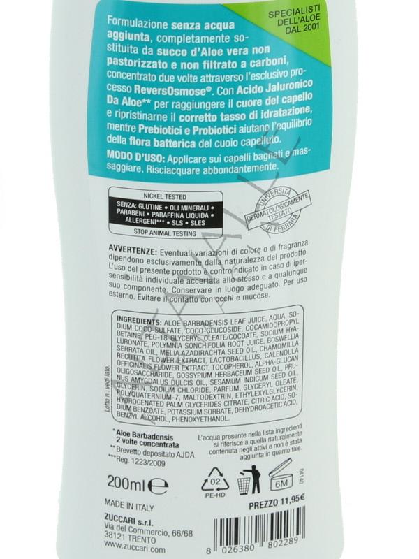 Aloecare Shampoo di Zuccari ha una formulazione senza acqua aggiunta, completamente sostituita da succo d’Aloe Vera non pastorizzato e non filtrato a carboni, concentrato due volte attraverso l’esclusivo processo ReversOsmose;