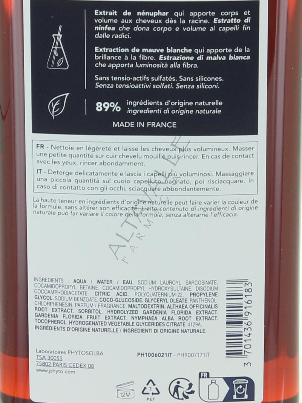 Phyto Volume Shampoo apporta istantaneamente corpo e tenuta, fin dal primo utilizzo i capelli appaiono visibilmente più densi e spessi;