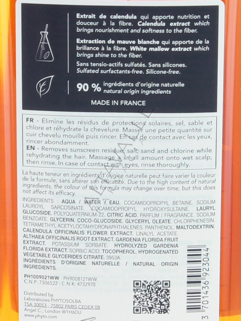 Phytoplage Shampoo dopo sole reidratante, crea una delicata schiuma che elimina sale, sabbia e cloro;