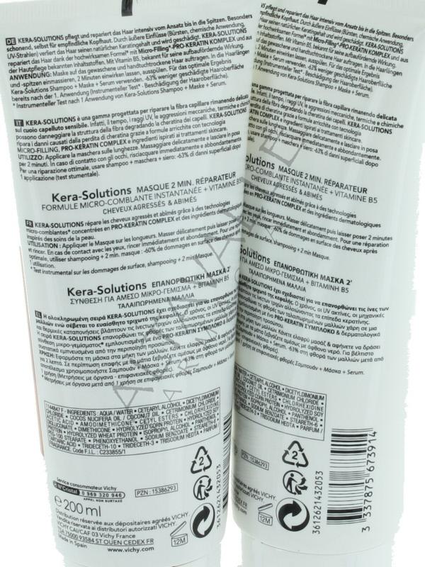 Dercos Kera Solution Maschera riparatrice è un trattamento dopo shampoo a base di Pro-Keratin Complex in concentrazione al 4,0%,