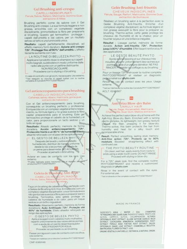 Phytodefrisant Gel Brushing Anticrespo grazie ad un complesso di estratti vegetali disciplina i capelli e li protegge dall'umidità,