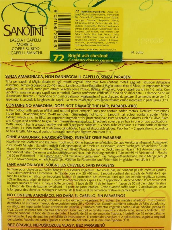 Sanotint Sensitive Tinta 72 Castano Chiaro Cenere per chi ha capelli e pelle sensibili, può tranquillamente decidere a colorarsi i capelli