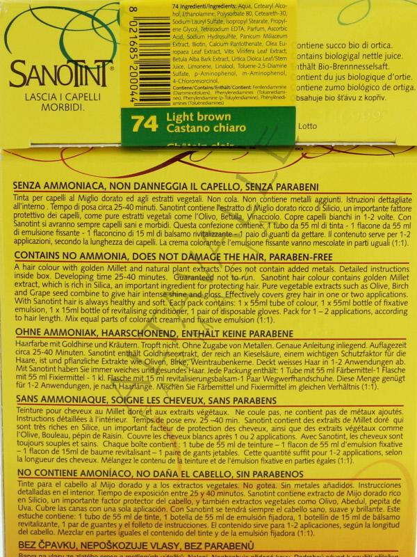 Sanotint Sensitive Tinta 74 Castano Chiaro per chi ha capelli e pelle sensibili, può tranquillamente decidere a colorarsi i capelli