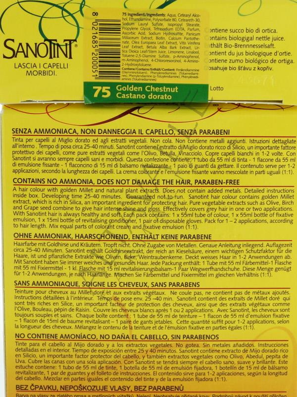 Sanotint Sensitive Tinta 75 Castano Dorato per chi ha capelli e pelle sensibili, può tranquillamente decidere a colorarsi i capelli