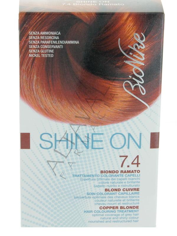 Bionike Shine On Tinta Biondo Ramato 7.4 è una tintura permanente studiata per offrire una colorazione naturale e brillante ideata per il cuoio capelluto (cute) sensibile;