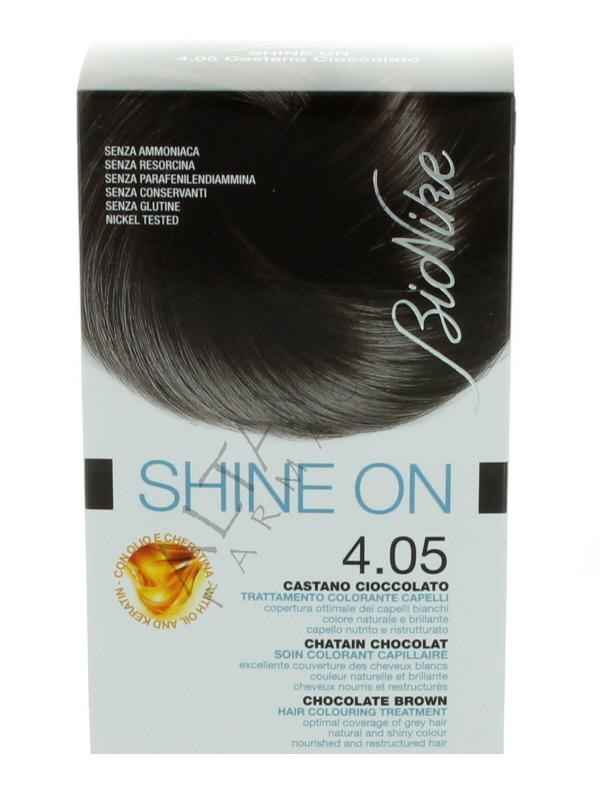 Bionike Shine On Tinta Castano Cioccolato 4.05 è una tintura permanente studiata per offrire una colorazione naturale e brillante ideata per il cuoio capelluto (cute) sensibile;