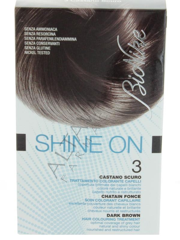 Bionike Shine On Tinta Castano Scuro 3 è una tintura permanente studiata per offrire una colorazione naturale e brillante ideata per il cuoio capelluto (cute) sensibile;